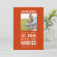 Orange White Modern Photo Wedding Invitations avec manger, boire et être marié thème. Elke Clarke©. Exemple de photo seulement. Remplacez par le vôtre. Ajoutez votre texte faire-part de mariage à l'arrière de la carte. Utilisez les invites ou sélectionnez "customiser" pour plus d'options de modification.