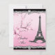 Les invitations aux mariages de la Tour Eiffel rose Parisienne sont décorées dans des tons vifs de rose, noir, argent, blanc et une touche de chocolat. La façade présente des branches en fleurs de cerisiers roses pour un effet élégant. Au loin se trouve la tour Eiffel. Le haut et le bas de la carte sont ornés de bijoux argentés et élégants. Entre les bijoux, une perle d'argent au décor tourbillon. L'arrière présente le même bijou et la même bordure en perle avec un arrière - plan noir. Le texte correspond à une police de caractères rose pâle et cursive. Vous pouvez cliquer sur le bouton de personnaliser orange sous la carte de démonstration ci-dessus et modifier la couleur, le style, la taille et le libellé du texte à votre convenance. Vous pouvez également utiliser la fonction de personnalisation, trouvée à droite de celle-ci si vous êtes satisfait de la couleur, du style et de la taille du texte. Il vous suffit de changer le libellé pour correspondre à votre jour de mariage. Une fois que vous avez terminé, jetez un coup d'oeil sur l'avant et l'arrière de la démo pour voir à quoi ressembleront les résultats avant de commander. Chaque invitation est accompagnée d'une enveloppe blanche. Si vous aimez ce design, cliquez sur "empreintes naturelles" ou "stocker" ci-dessus pour trouver les cartes RSVP correspondantes, les sceaux mariages et bien plus encore. Vous trouverez également des paons, des damas et d'autres mariages à thème populaires stationnaires.