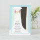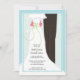 faire-part de mariage fantasque avec une jolie illustration d'une mariée et d'un marié et d'une frontière bleue. modèle facile à utiliser, avec espace pour ajouter vos propres informations.Obtenez les cartes RSVP correspondantes ci-dessous.