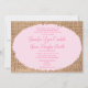 Ce faire-part de mariage rustique est parfait pour tous les mariages occidentaux du pays. Il présente un arrière - plan rustique imprimé en burlap des deux côtés de l'invitation. L'écriture d'invitation est imprimée sur un ovale rose en lambeaux avec des bords déchirés. Le burlap n'est qu'un dessin imprimé. Il ne s'agit pas d'un tissu de robinet. Ce faire-part mariage est parfait pour le couple qui a un mariage de l'ouest ou de la grange et qui veut intégrer le burlap dans son thème de couleur mariage.