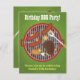 Invitez vos amis plus de pour la partie de BBQ avec cette invitation fraîche. Elle a un gril rouge de BBQ où les viandes préférées aiment des saucisses, biftecks de boeuf, poulet grillent au-dessus du feu d'hurlement. Arrière - plan d'herbe verte pour symboliser le jardin. Personnalisez facilement avec vos détails de partie.
