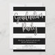 Invitations de parties scintillantes et de fête de remise des diplômes de rayures. Célébrez votre diplômé avec ce scintillement, parties scintillantes, et invitation moderne barrée de fête de remise des diplômes. Créé avec les accents argentés de parties scintillantes, cette invitation d'obtention du diplôme avec l'éclat dans des vos mains d'invité lors de le recevoir. Les approvisionnements coordonnés de partie sont disponibles en magasin de MetroEvents sur Zazzle. Les invitations supplémentaires de fête de remise des diplômes sont disponibles chez Metro-events.com.