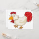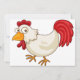 Ce dessin est un poulet de dessin animé. Le poulet est blanc avec la queue rouge et se tient debout sur le côté. Ce poulet est dans un style de dessin animé. Ce dessin humoristique de poulet a l'air génial sur ces Invitations