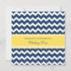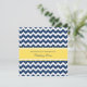 Elégantes invitations à renouveler vos voeux de mariage en bleu marine foncé, jaune citron et blanc éclatant et bandes rétro chevron zigzag motif avec texte entièrement personnalisable pour inclure vos détails de la cérémonie de renouvellement de voeux.