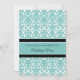 Élégantes invitations au renouvellement de voeux de mariage dans un motif de damas floral bleu, noir et blanc turquoise avec un texte entièrement personnalisable pour inclure les détails de votre cérémonie de renouvellement de voeux.