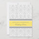 Élégantes invitations au renouvellement de voeux de mariage dans un motif de damas floral jaune canari, gris et blanc brillant, avec un texte entièrement personnalisable pour inclure les détails de votre cérémonie de renouvellement de voeux.