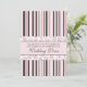 Élégantes invitations de renouvellement de voeux de mariage en élégantes rayures rose, brune et blanche et motif de fleurs avec texte entièrement personnalisable pour inclure vos détails de la cérémonie de renouvellement de voeux.