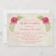 Invitations de nuptiale personnalisées avec des roses d'aquarelle rose délicat et des feuilles vert printemps avec des détails rustiques vintage. Personnalisable avec votre texte.