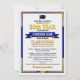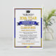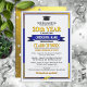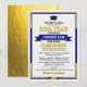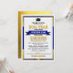 De superbes invitations de retrouvailles de promotion dans les couleurs de votre école, bleu et jaune, que vous personnalisez avec tous les détails de votre célébration pour votre grand événement de retrouvailles. Ce design présente un fond clair avec un texte plus foncé, des accents dorés dans les coins et une bordure de casquette de diplômé et de gland entourant les détails de l'événement. Le nom de votre école est mis en évidence sur une bannière dorée juste au centre.