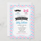 Invitation Chevron Blue & Pink Gender Reveal Invitation, avec peu de manches ou de mister.