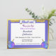 Invitation Hanoukka avec deux dreidels, pièces d'or et Shalom dans les tons violet et or. Les zones de texte sont prêtes à vous permettre de customiser avec vos informations.
