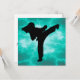 Nos arts martiaux éclair design féminin en bleu-vert turquoise sur le devant de ces invitations de fête.