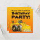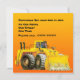 Comporter un bêcheur ou un chargeur jaune énorme sur un arrière - plan d'orange d'amusement. Imprimé dans polychrome des deux côtés, l'abondance de l'espace pour compléter les détails complets de votre camion merveilleux party ! Fourni avec les enveloppes blanches les plus de haute qualité.