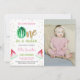 Fêtez la journée spéciale de votre enfant avec ces Parties scintillant pétillantes Watermelon Invitations d’anniversaire! Avec un design amusant de pastèque aux accents de parties scintillant, ces invitations personnalisables vous permettent d'ajouter une photo personnelle pour une touche unique. Parfaites pour une fête d’anniversaire d’été, ces invitations ajouteront une ambiance magique et rafraîchissante à la fête de votre petit. Commandez dès maintenant pour rendre votre fête d’anniversaire inoubliable !
