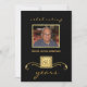 Invitations formelles personnalisées à la fête d'anniversaire — Invitations élégantes mais masculines de photos en noir et or avec accents dorés et monogramme joliment détaillés sur parchament simulé. Ajoutez votre propre photo et customisez le nom, la date et les détails de l'occasion heureuse. Parfait pour les photos contemporaines ou vintages. Des enveloppes de correspondance, des cartes postales et des cartes de remerciements sont disponibles.**IMPORTANT : Pour les cartes d'invitation standard 5 x 7. Autres tailles et styles disponibles dans la galerie.
