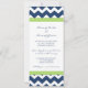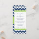Invitations à la fête d'engagement dans l'élégant bleu marine foncé, vert citron clair et blanc amusant et rétro chevron zigzags raypes motif. Entièrement personnalisable avec les détails de votre fiançailles. Également disponible dans une large gamme de produits mariages assortis.