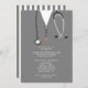 Invitations de la fête de remise de diplômes de l'école de médecine créative mettant en vedette des gommes d'hôpital et de l'art stéthoscope. Modifier le texte pour créer une invitation de groupe de médecin unique ou faire-part de diplômé de l'école de médecine.