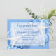 Invitations de la partie d'engagement avec des fleurs bleues. Les étoiles de mer blanches (étoile de mer) sont nichées parmi les fleurs bleu clair réalistes dans ce design horizontal. Customisez le texte bleu pour n'importe quel type de fête ou de douche avant le mariage. En outre, il ya une option pour télécharger et partager les invitations en ligne.