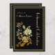 Design floral noir et or élégant avec une disposition moderne propre. Un choix élégant pour une fête de retraite pour femme. Customisez le texte avant de la carte, puis remplissez les informations de votre événement sur la conception arrière correspondante.
