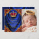 Invitation du Prince baptême avec couronne rouge bleu et or sur un bel arrière - plan bleu royal et or rouge satin tourbillon. Cette élégante invitation au baptême de prince couronne rouge et or est facilement customisée pour votre événement en ajoutant vos photos et détails de l'événement, style de police, taille et couleur de police, et libellé.