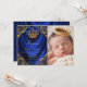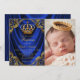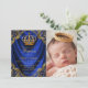 Invitation au baptême du prince avec couronne bleu et or sur un bel arrière - plan de satin bleu et or royal. Cette élégante invitation au baptême royal bleu et or couronne est facilement customisée pour votre événement en ajoutant vos photos et détails de l'événement, style de police, taille et couleur de police, et libellé.