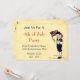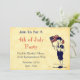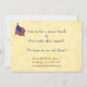 Un modèle d'invitation de fête du 4 juillet éditable avec une illustration vintage d'un garçon tenant un drapeau américain et des feux d'artifice et un espace pour votre adresse de retour au dos en lettres amusantes sur un fond de parchemin faux.