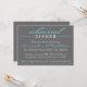 Les invitations élégantes de dîner de répétition (gris-foncé/pâlissez le bleu de ciel léger en pastel/blanc)… ces invitations classiques mais modernes et d'amusement sont la manière parfaite d'inviter la famille, des amis intimes et aimé, et vos membres de noce (demoiselles d'honneur, garçons d'honneur, le meilleur homme, la domestique de l'honneur, la dame de honneur, demoiselles de honneur, etc.) au dîner la nuit de votre répétition de mariage. Laissé chacun sachez que vous ne pouvez pas les attendre pour vous joindre pendant une nuit d'amusement complètement de grande nourriture, grandes boissons, et pains grillés extraordinaires et souvenirs. Entièrement personnalisable… écrivez juste les noms des jeunes mariés pour être, le restaurant ou l'emplacement du dîner de répétition et de vos invitations de dîner de répétition sont prêt à être envoyé. Les caractéristiques de conception une police chique. Voir le WindyCityStationery.com pour notre ligne complète des invitations "élégantes" de dîner de répétition dans un éventail de couleurs d'assortir vos couleurs de mariage aussi bien que timbres-poste, étiquettes, autocollants, et plus "élégants" assortis.