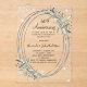 Un arrière - plan clair et transparent. Décoré de verdure, d'un cadre ovale faux argenté et de faux diamants. Personnalisez et ajoutez un nom et des détails.