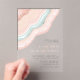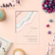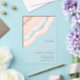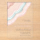 Tous les designs mariages ne sont pas égaux. L'agencement asymétrique des pièces de cet ensemble mariage frappant prouve que ce n'est pas une mauvaise chose ! Des bandes de couleur ondulées dans des tons contrastés de bleu turquoise et d'or rose, avec un centre de cristal scintillant forment un accent géode/agate sur la plupart des pièces de l'ensemble. Le faire-part de mariage acrylique ci-dessus comprend un modèle pour ajouter les détails pertinents de votre événement mariage. Recherchez ID647 pour voir toutes les pièces de coordination de cet ensemble.