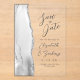 Le bord gauche de cet élégant mariage moderne, sauf la carte de date, comporte une bordure en aquarelle grise et blanche décorée d'une parties scintillant en faux argent. Le texte personnalisable combine écriture manuscrite grise au fusain, copperplate et polices italiques sur un arrière - plan transparent clair.