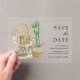 Éblouissez vos invités avec cet élégant enregistrer la date avec la typographie moderne et plante cactus. Ajoutez simplement les détails de votre événement sur ce modèle facile à utiliser pour en faire une carte unique de sauvegarde de la date.