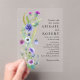Aquarelle fleur sauvage arrangement floral mariage Acrylique Invitation. Ce faire-part de mariage à l'aquarelle étonnante design floral fleur sauvage est idéal pour une fête de printemps ou d'été. L'oeuvre présente un agencement vibrant de fleurs sur le côté gauche, dans des teintes douces de bleu et de violet, complétées par de délicats feuilles bleutés-verts qui apportent une touche de fraîcheur. L'esthétique globale capte l'essence de la beauté de la nature, créant une atmosphère accueillante et élégante qui enchantera les invités en anticipant l'occasion joyeuse.