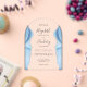 Cette élégante faire-part de mariage moderne en arc présente des bordures latérales d'aquarelle bleu bébé ornées d'une parties scintillant en faux argent. Le texte personnalisable combine écriture manuscrite, copperplate et polices italiques en gris fusain sur un arrière - plan clair.