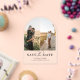 Annoncez votre journée spéciale en style avec ce mariage époustouflant en forme d'arc enregistrez la carte de date. L'avant présente un collage photo unique en forme d'arc qui présente deux de vos photos préférées, joliment jumelé à l'élégant titre "Save the Date" qui combine une police serif raffinée avec une calligraphie moderne.