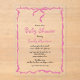 Ajoutez une touche de charme et de plaisir à votre célébration avec Whimsical Quirky Blush Bow Baby shower Invitation! Dotée d'un design joyeux dessiné à la main dans des tons rose vif et doux, cette invitation allie élégance et légèreté. Parfait pour honorer la future maman, il comprend une typographie fantaisiste et des détails créatifs qui donnent le ton d'un rassemblement joyeux et unique. Célébrez dans le style avec une invitation aussi douce et spéciale que l’occasion!