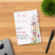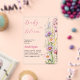 Un arrière - plan clair et transparent. Décoré d'un fleur sauvage rose, violet, jaune. Personnalisez et ajoutez le nom de la mère à être et les détails de la fête. Texte : Bébé en fleurs.