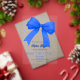 Un arrière - plan clair et transparent, décoré d'un grand arc bleu royal. Personnalisez et ajoutez un nom et des détails du parti.