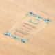 Invitations En Acrylique Blue Floral Gold Catholic Cross Wedding