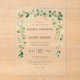 Cette élégante faire-part de mariage rustique dispose d'une arche de verdure d'eucalyptus d'aquarelle délicate. Personnalisez-le avec les noms du couple en caractères sans serif gris charbon sur un arrière - plan transparent clair.