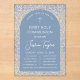 Invitations En Acrylique Boy First Communion Blue Arch Floral Pattern