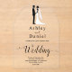 Cet élégant faire-part de mariage acrylique en arc noir et blanc est parfait pour un mariage moderne. Le design simple présente une élégante calligraphie noire et une illustration de mariée et de mariée sur un arrière - plan transparent clair.