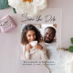 Clair mariage acrylique enregistrez le faire-part de date avec votre photo, "Save the Date" dans un script chic, et vos noms, date mariage et emplacement dans une typographie simple et moderne.