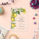 Cette magnifique invitation à la fête du 60ème anniversaire d'acrylique à thème méditerranéen dégage un charme rustique. Il présente un arrangement en cascade de citrons d'aquarelle frais en jaune et vert agrumes avec fleurs blanches. Il fait un beau choix pour les fêtes d'anniversaire à tout âge et a un coloris lumineux et joyeux qui évoque le bonheur et la joie. Personnalisez le modèle de texte avec les détails de votre événement.