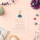 Invitations En Acrylique Croix d'or Première communion florale Turquoise