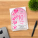 Parties scintillant élégante et ballons roses à motifs avec cordes de ruban rose et étoiles d'accent rose "10" 10e anniversaire invitation de fête.
