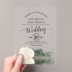 Ces magnifiques invitations de mariage acrylique présentent un design élégant, classe, romantique, élégant et glamour avec une seule rose blanche en ivoire à long tige sur son côté miroir dans un bassin d'eau. Le texte est écrit en calligraphie script avec des boucles délicates et des swashes sur les extrémités des lettres. Merveilleuse façon d'invitation vos amis et votre famille pour partager votre joie dans votre journée spéciale.