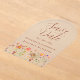 The elegant terracotta rust modern script pairs beautifully with the stylish transparent arch acrylic invitation background, creating a stylish yet natural look that reflects your boho wedding theme. This wildflower garden design is ideal for rustic, countryside, outdoor, or barn weddings inspired by nature’s colors.