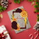 arched acrylic shape and is edged with a striking gold and burgundy/red frame. The sign is lavishly decorated with a dense cluster of burgundy, deep red, and golden-yellow marigolds and fern-like greenery, giving it a rich, autumnal, and high-end look.