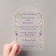 Célébrez votre journée spéciale avec la beauté intemporelle de notre Elegant Fleur sauvage Clear Acrylique Faire-part de mariage. Dotée d'une délicate bordure de fleurs sauvages peints à la main dans des roses douces, des violets et des verts, cette invitation transparente offre une façon unique et sophistiquée d'invitation à vos invités. Parfait pour les mariages de jardin, les fêtes de printemps ou les cérémonies romantiques en plein air, ce design allie élégance moderne et charme naturel. Customisez avec vos données personnelles pour créer un souvenir qui sera chéri pour toujours.