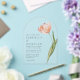 Une élégante faire-part de mariage minimaliste présente un design simple avec une simple tige de tulipe couleur pêche douce et une typographie moderne gris foncé pour personnaliser vos détails importants tels que les noms, date mariage, heure et emplacement.
